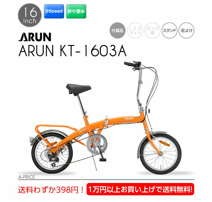 【代引き手数料無料】【1万円以上お買い上げ送料無料】★★ポイントアップキャンペーン実施中★★【折りたたみ自転車】【ARUN】アラン KT-1603A オレンジ★カードOK★★ポイントアップキャンペーン