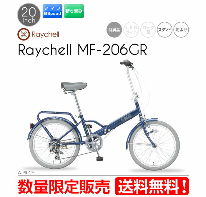 【代引き手数料無料】【1万円以上お買い上げ送料無料】★★ポイントアップキャンペーン実施中★★【折りたたみ自転車】【Raychell】レイチェル MF-206GR ブルー★カードOK★★ポイントアップキ